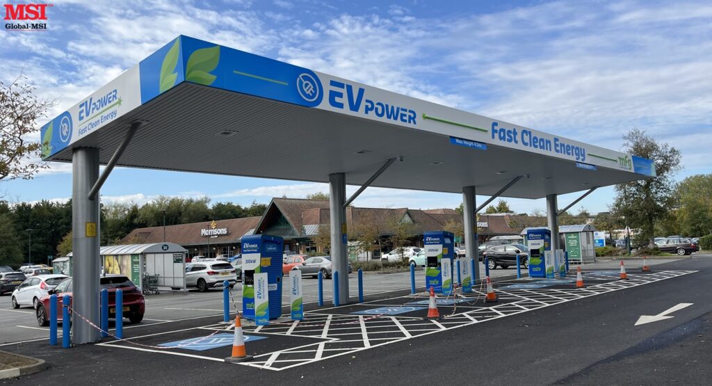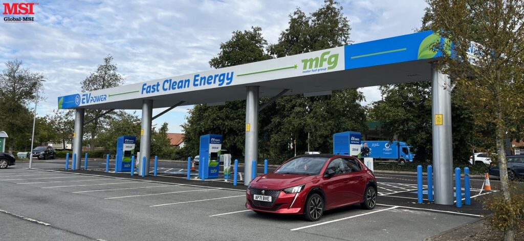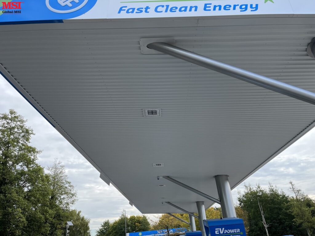 Global-MSI recently completed the design, manufacture & installation of this canopy above EV chargers at the Motor Fuel Group forecourt in Fakenham, Norfolk. Global-MSI is proud to support MFG’s continuing roll-out of EV charging facilities across the country.