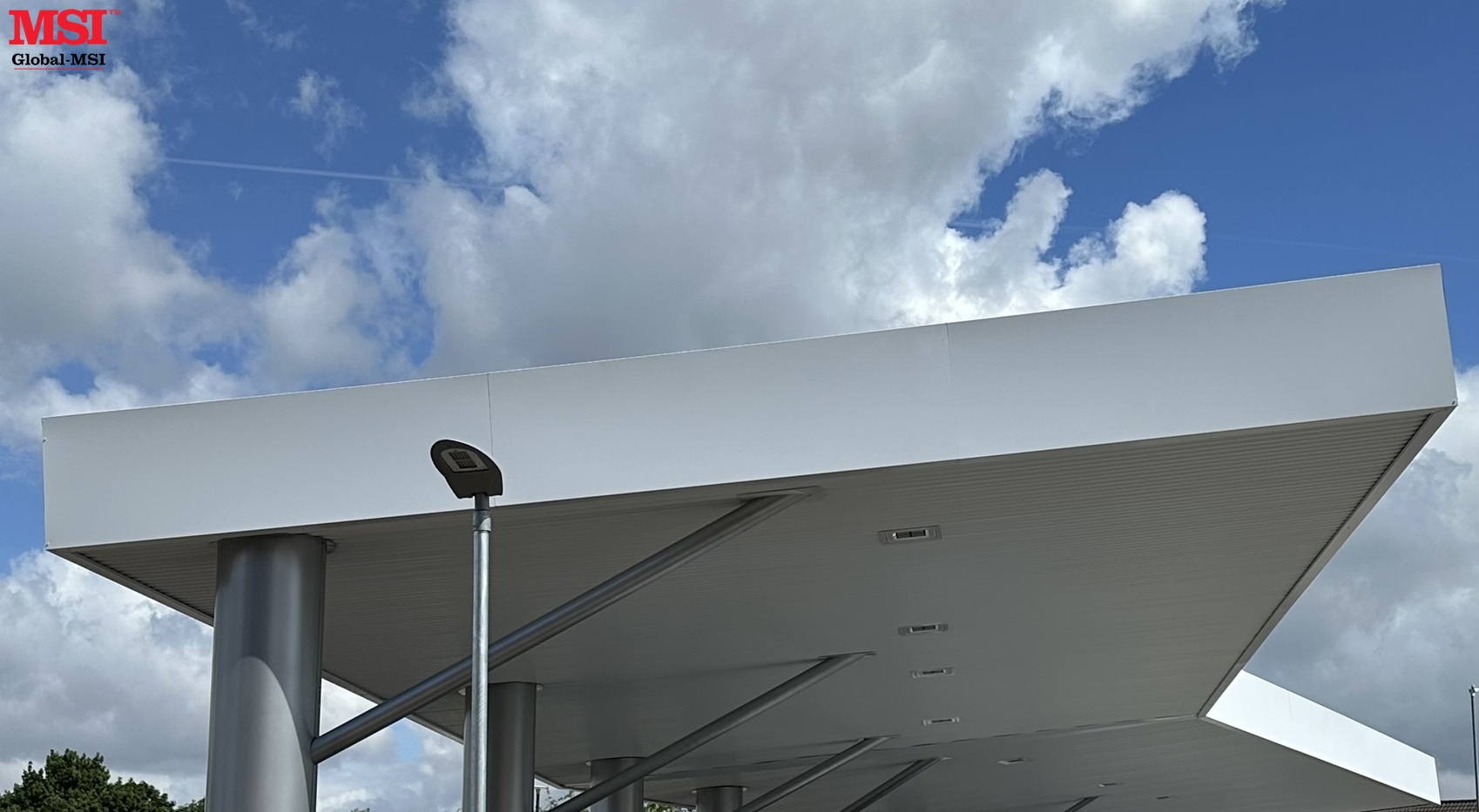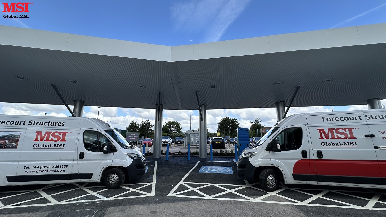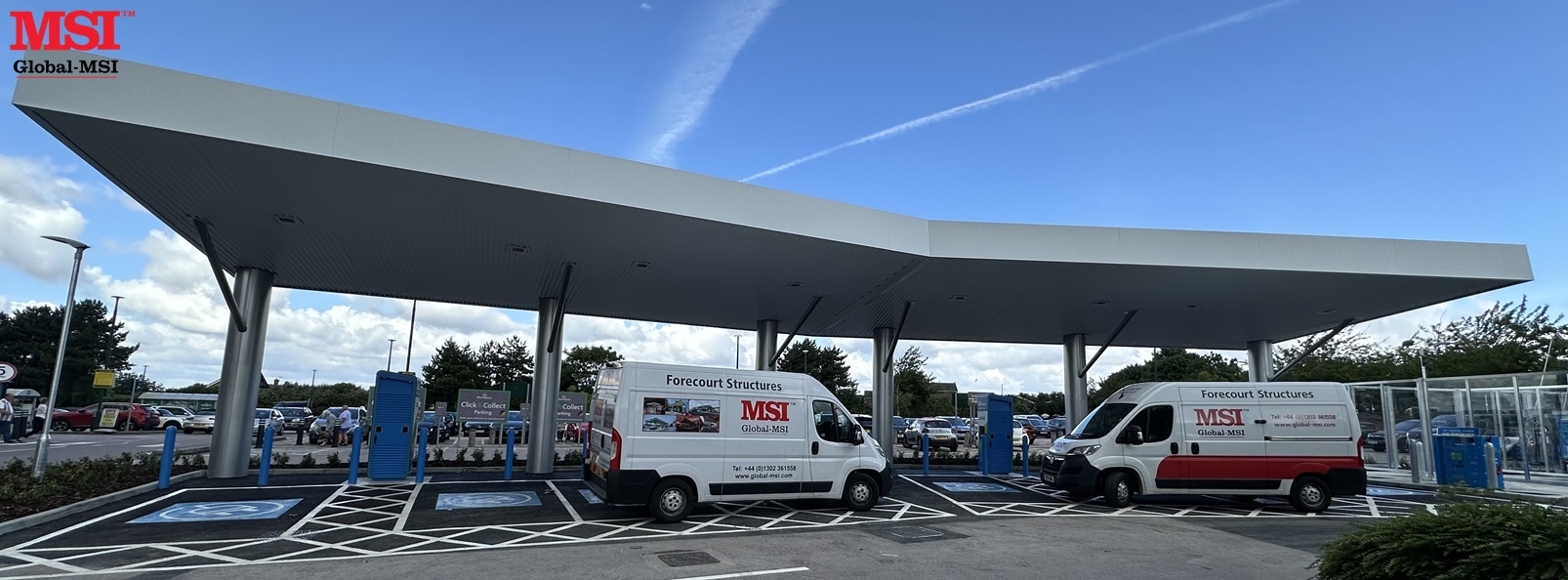 Global-MSI recently completed the design, manufacture & installation of this canopy above EV chargers at the Motor Fuel Group forecourt in Gravesend, Kent. Global-MSI is proud to support MFG’s continuing roll-out of EV charging facilities across the country.